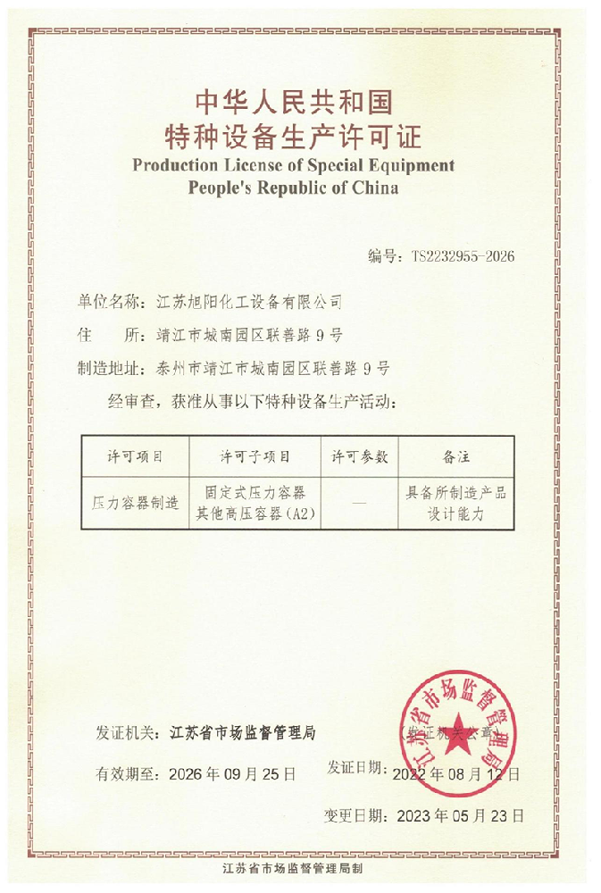公司位于靖江經(jīng)濟技術開發(fā)區(qū)城南園區(qū),地理區(qū)位優(yōu)越、交通便利,在全體員工的銳意講取和奮力拼搏下,江蘇旭陽化工設備近年發(fā)展強勁,規(guī)模迅速擴大。